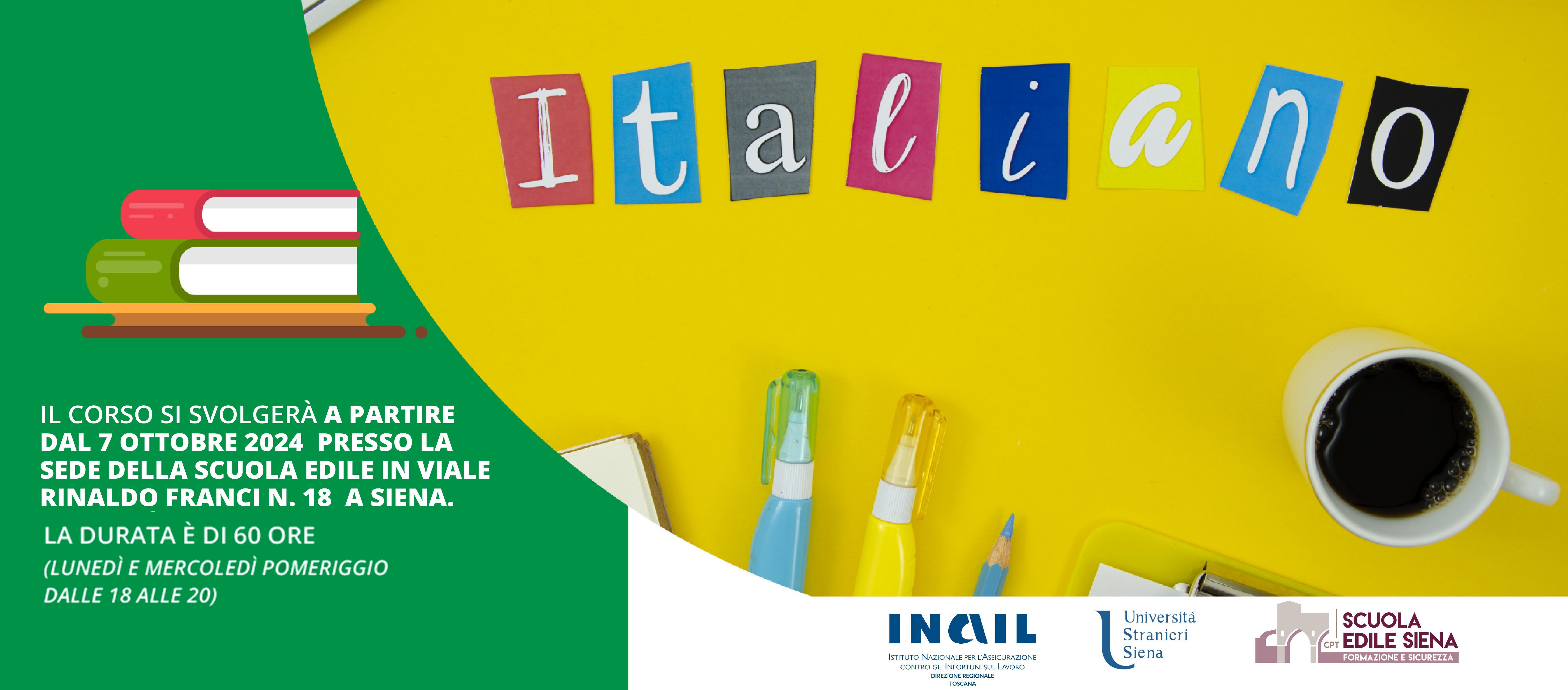 L’iniziativa realizzata in collaborazione tra Scuola Edile – C.P.T. Siena, INAIL e Università per Stranieri di Siena, offre l’opportunità di un percorso Gratuito di lingua e cultura italiana, finalizzato all’integrazione dei lavoratori stranieri nelle aziende del territorio ed alla diffusione della cultura sulla prevenzione e sicurezza sul lavoro, fornendo agli studenti gli strumenti necessari affinché possano usare e comprendere la lingua italiana in diverse situazioni .