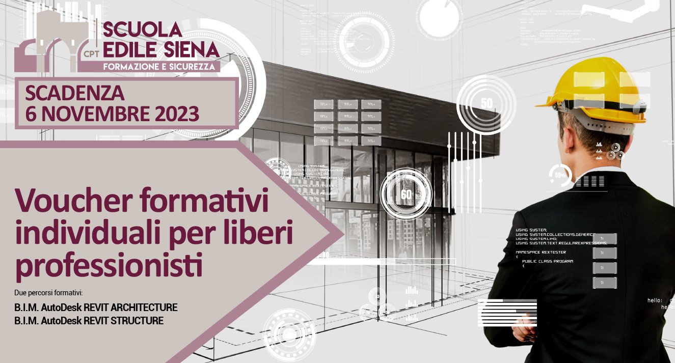 La Scuola Edile-C.P.T. Siena partecipa all’Avviso della Regione Toscana per l’erogazione di voucher per il rimborso totale o parziale delle spese di iscrizione ai corsi di aggiornamento, al fine di sostenere la partecipazione delle/i libere/i professioniste/i a percorsi formativi tesi a rafforzare ed aggiornare le competenze professionali e migliorare le proprie prospettive di carriera lavorativa.